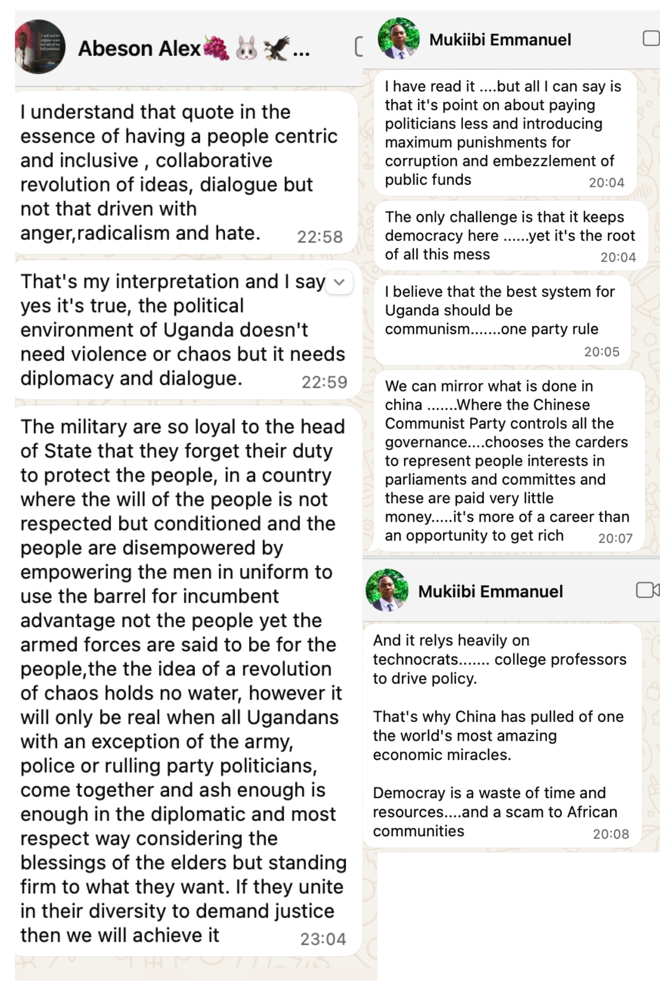 KONRAD: Finally, we agree. That part of the manifesto is not just authoritarian—it’s creepy. Imagine a bunch of village elders forcing two adults to marry because they kissed under a mango tree. If that’s the future, count me out. But this is my point: Kakwenza’s manifesto isn’t a manifesto. It’s a collection of angry one-liners wrapped in revolutionary cosplay. Real change is slow, thoughtful, and painful. Not reactionary, not puritanical, and definitely not elitist.